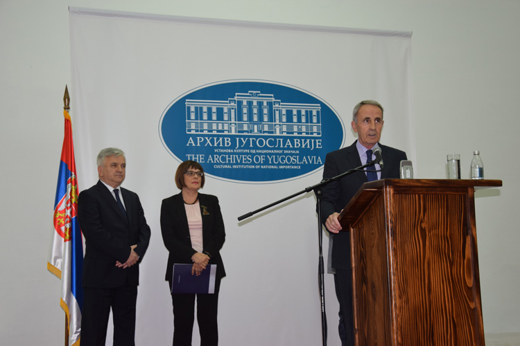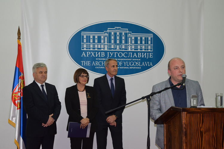 Director of the Archives of Yugoslavia Miladin Milošević addressed the audience.