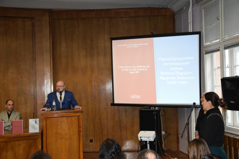 Драган Теодосић, руководилац Одељења за објављивање архивске грађе и међуархивску сарадњу Архива Југославије је представио зборник докумената „Српско/југословенско-египатски односи 1908–1990“, који је приредио заједнички са Јеленом Ђуришић, архивским саветником Архива Југославије, указујући да је овај зборник докумената део едиције „Документа о спољној политици Југославије“ која има за циљ да стручној, научној и широј јавности приближи документа која се тичу билатералних односа Југославије са одређеним земљама током двадесетог века, указујући да се зборник докумената састоји од двеста шездесет и четири документа из фондова Архива Југославије и Државног архива Србије и да покривају најшире сегменте билатералних односа између званичних Београда и Каира. Теодосић је такође истакао да је стручног предговора за зборник др Драган Богетић, дописни члан Српске академије наука и уметности.
