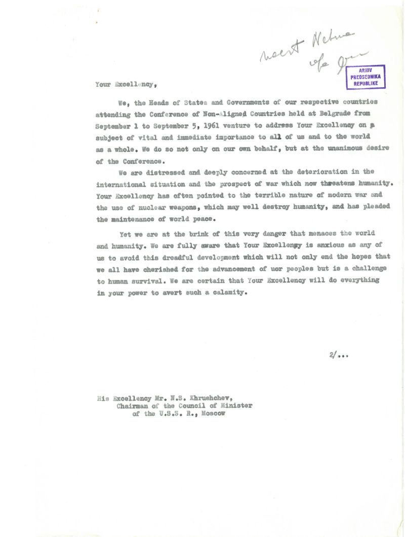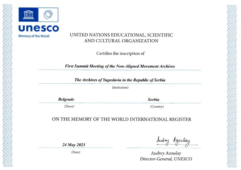Одлуком Владе Републике Србије 1. септембар се обележава као Дан несврстаних, као сећање на 1. септембар 1961. године када је у Београду започела са радом Прва конференција шефова држава или влада несврстаних земаља. Овим поводом указујемо да су архивски материјали Прве конференције шефова држава или влада несврстаних земаља од маја 2023. године уписани у УНЕСКО-ов регистар „Памћење света“, као заједничка номинација Индонезије, Индије, Египта, Алжира и Србије. Такође Архив је 2011. и 2021. године поводом педесет односно шездесет година од Прве конференције несврстаних приредио изложбу „Прва конференција шефова држава или влада несврстаних земаља, Београд 1961“ на три језика (српски, енглески, француски) чији каталог можете преузети у pdf формату на званичној интернет страници Архива Југославије. Указујемо да је Архив свој допринос изучавању несврстаности дао и кроз низ зборника докумената о билатералним односима Југославије са несврстаним земаља, и то Индонезијом (два зборника), Алжиром, Мароком, Ираном и Египтом.