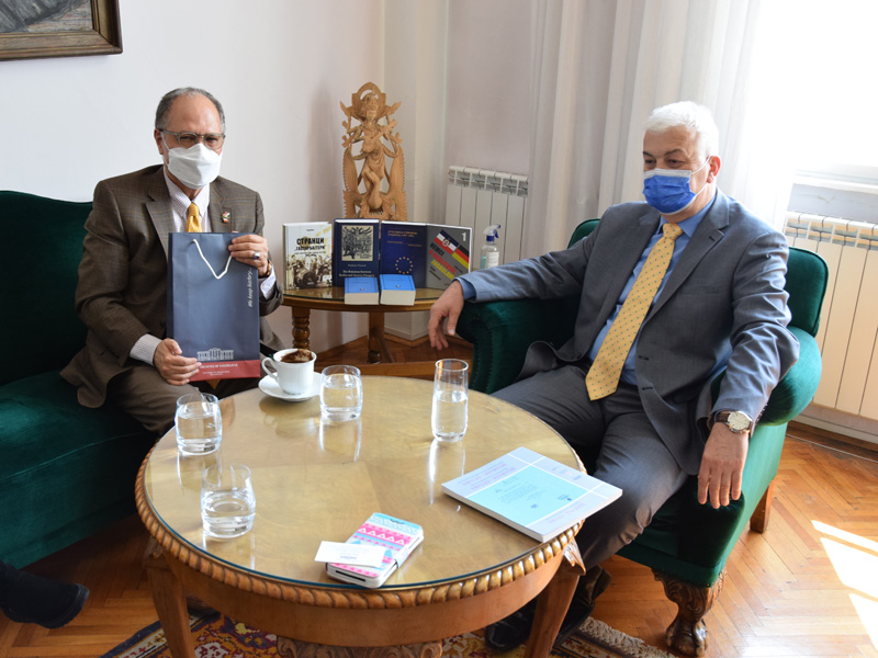Новоименовани амбасадор Сједињениих Мексичких Држава у Београду, Њ.Е. Карлос Феликс Корона (Carlos Felix Corona), у друштву госпође Зоране Бјегојевић, службеника Амбасаде у својству преводиоца, посетио је Архив Југославије 15. априла 2021. године.